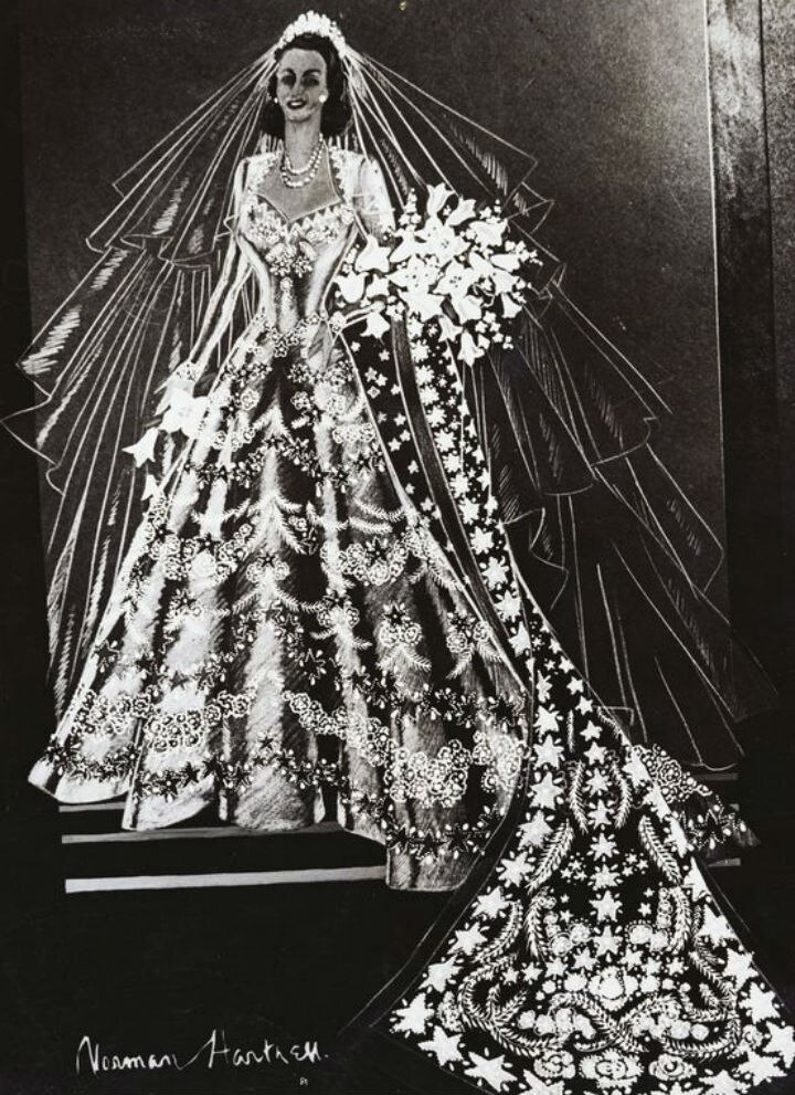 A wedding dress, beyond style and the choice of color, is symbolic during a wedding ceremony. Queen elizabeth ii who wore a gown designed by norman hartnell for her wedding to prince philip in 1947. A wee while ago, reader lea emailed me with a suggestion for a new blog feature: Queen mary provided the flanders lace used for the train and the dress also featured a strip of brussels lace, which was elizabeth's strathmore family heirloom. Queen elizabeth's 1947 nuptials to prince philip ushered in new bridal style where no detail went undone.
